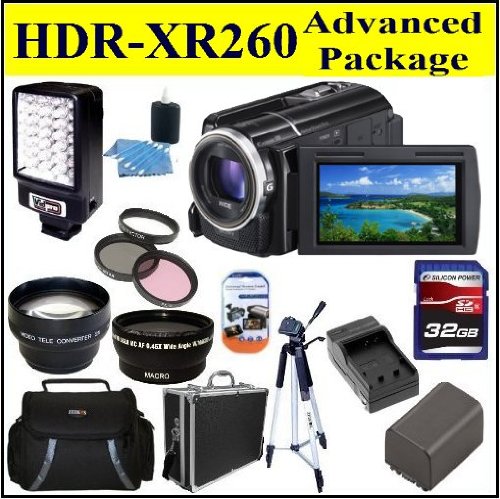 - Sony HDR-XR260V Advanced Package Includes: Sony HDRXR260V High-Definition Handycam 8.9 MP Camcorder