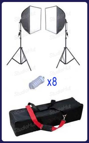 - Included in kit: 8 x 30W CFL bulbs, 2 light stands, 2 easy fold softboxes and 1 carry bag